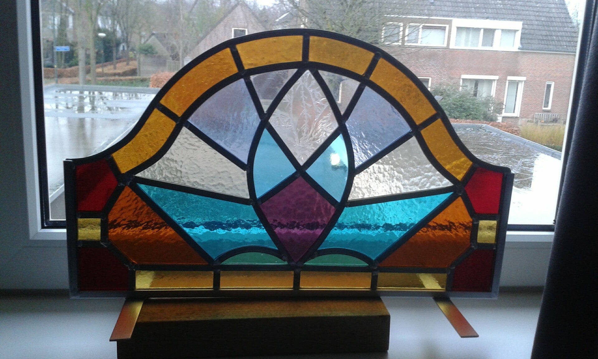 Voorzetraam gemaakt met glas-in-lood.